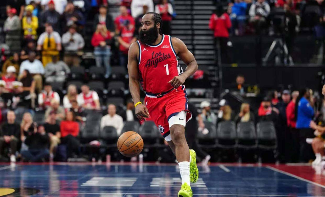 哈登在第四节一次突破中摔倒,但立即起身继续比赛。 现场医疗团队曾想进场检查,被他挥手拒绝。 这种专注度感染了全队,随后快船打出一波12-2的进攻高潮。