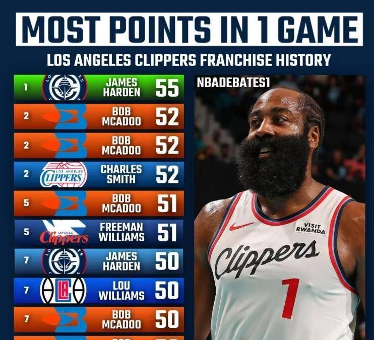 最特别的纪录当属哈登同时保持着火箭和快船两支球队的队史得分纪录。 在火箭时期他曾单场得到61分,如今在快船又拿下55分。 NBA历史上从未有球员能在两支不同球队都创造队史得分纪录。